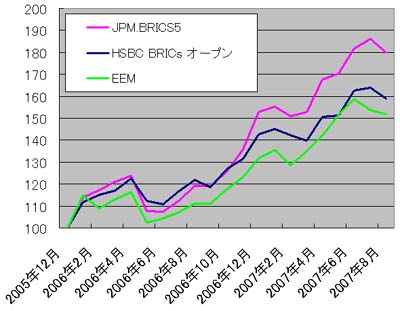 BRICs投資のファンドとEEMを比較されているようですが、EEMは