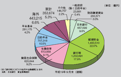 ゆうちょ・銀行・生保・年金基金 と日銀が主な保有者で、