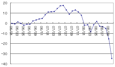 先進国を見ると、「日本ダメ、米国ダメ、欧州はダメダメ、英国は最悪」と、そろいも揃って先行きが怪しく、予想では2009年にはリセッション(景気後退)に突入すると考えているいるようです。株価は景気の半年先を先取りするといわれていますので2008年夏頃が最悪期でしょうか?