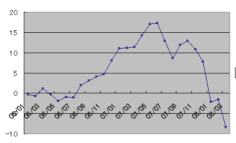 ・インド SENSEX: 17227.56 から 15644.44 へ -9.2%の下げ