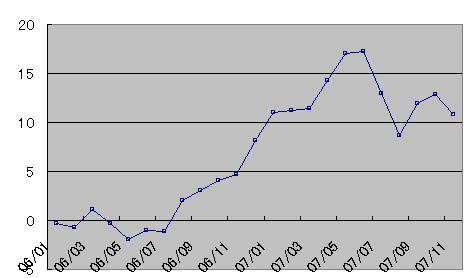 - 2007/9/30時点で、PERが15.9倍 (思っていた以上に割安か??)